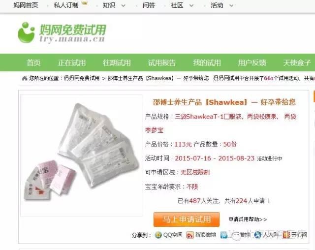 申请网址:http://try.mama.cn/TryList/detail/id/201